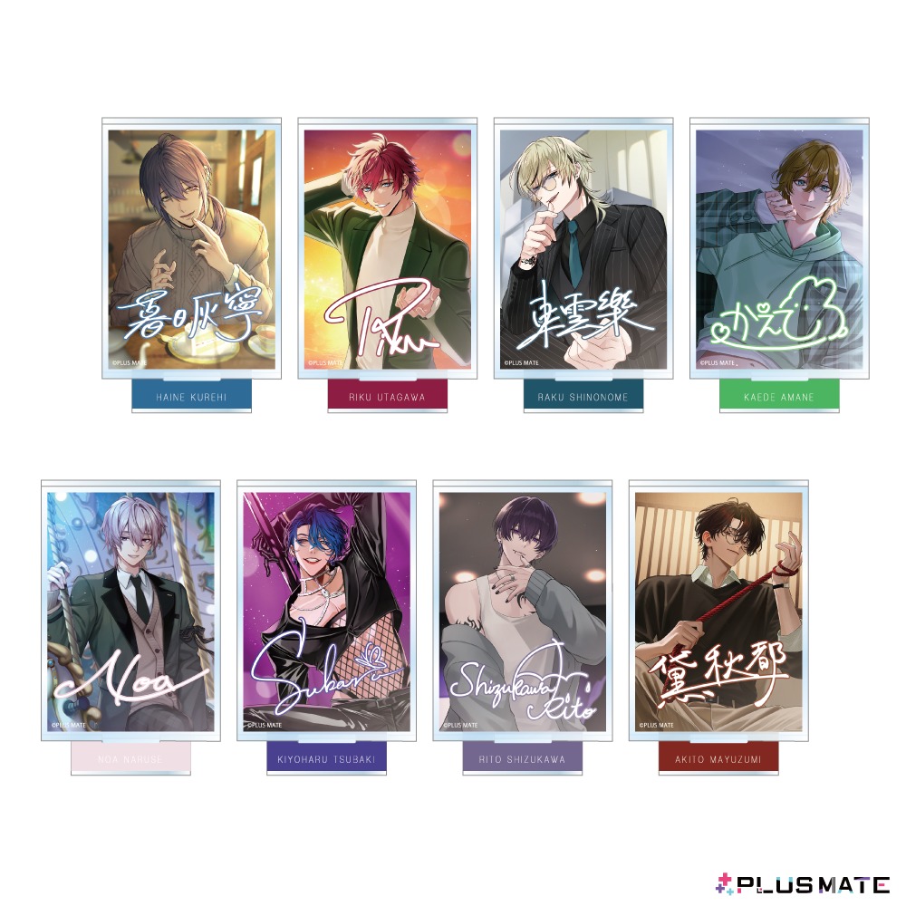 PLUSMATE秋便りとして『椿清春』『雫川凜斗』『黛秋都』『椹木琥珀』の常設グッズ、暮日以降のカレのCGアクリルスタンドの追加が決定♪